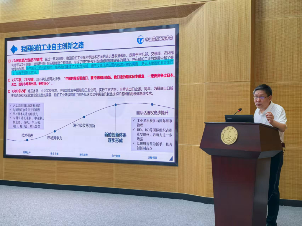 王俊利以《大国博弈下的船舶产业链竞争、挑战和机遇》为主题作报告。他指出,当前全球船舶产业中心已从西欧转移至东亚,中国造船产能占全球50%以上,造船业三大指标居全球首位,但同时也面临着诸多挑战。现阶段,我国船舶工业通过早期技术引进消化吸收,已进入自主创新阶段,在“油、散、集、气、邮”等关键船型开发和建造方面取得一系列突破,正加速迈向造船强国,而海洋新兴产业将成为重要突破口。