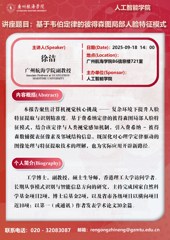 学术讲座预告:徐洁《基于韦伯定律的彼得森图局部人脸特征模式》-欧美精品日韩二区三区_欧美精品亚洲精品日韩专区_欧美日韩人妻精品系列一区二区三区_91在线无码精品秘 入口91_日韩人妻无码精品无码中文字幕_精品少妇人妻av无码久久_精品人妻无码一区二区色欲AⅤ_精品久久久久久人妻无码中文字幕_91人妻人人澡人人爽人人精品_久久午夜无码鲁丝片午夜精品_精品久久久久久人妻无码中文字幕